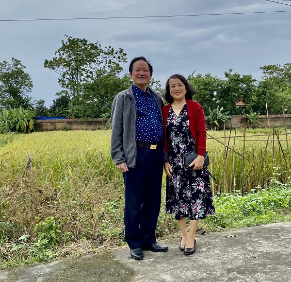 Tướng Hiệu và phu nhân bên cánh đồng lúa quê hương ( Năm 2020).