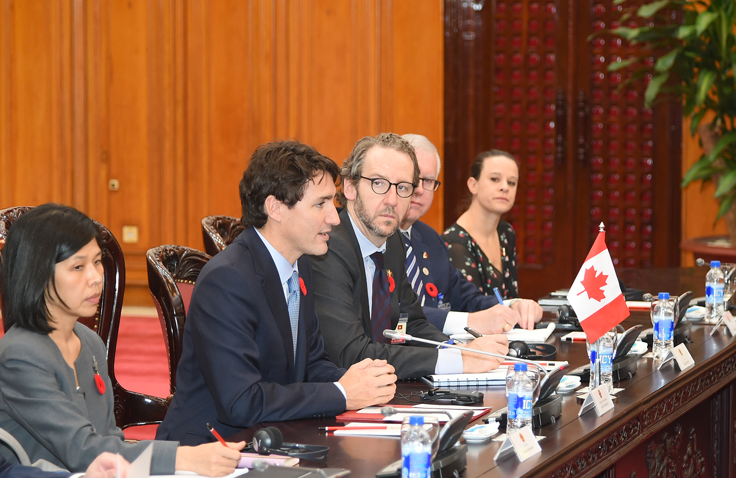 Chiều ngày 8/11, sau lễ đón chính thức, tại Trụ sở Chính phủ, Thủ tướng Chính phủ Nguyễn Xuân Phúc đã hội đàm với Thủ tướng Canada Justin Trudeau.