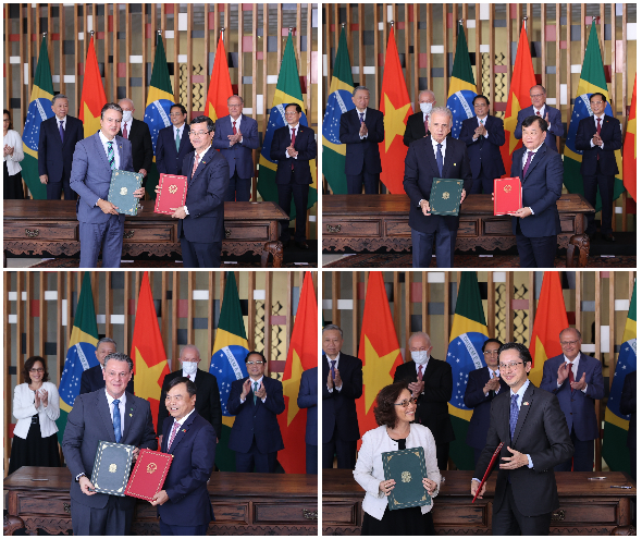 Theo đó, hai nhà lãnh đạo cùng ra Thông cáo chung và đã chứng kiến lễ ký kết các văn kiện hợp tác song phương trong các lĩnh vực ngoại giao, quốc phòng, giáo dục, nông nghiệp… nhằm tạo điều kiện phát triển mạnh mẽ hơn nữa quan hệ hợp tác, đem lại lợi ích thiết thực cho cả Việt Nam và Brazil, mang lại phồn vinh, thịnh vượng cho nhân dân hai nước.