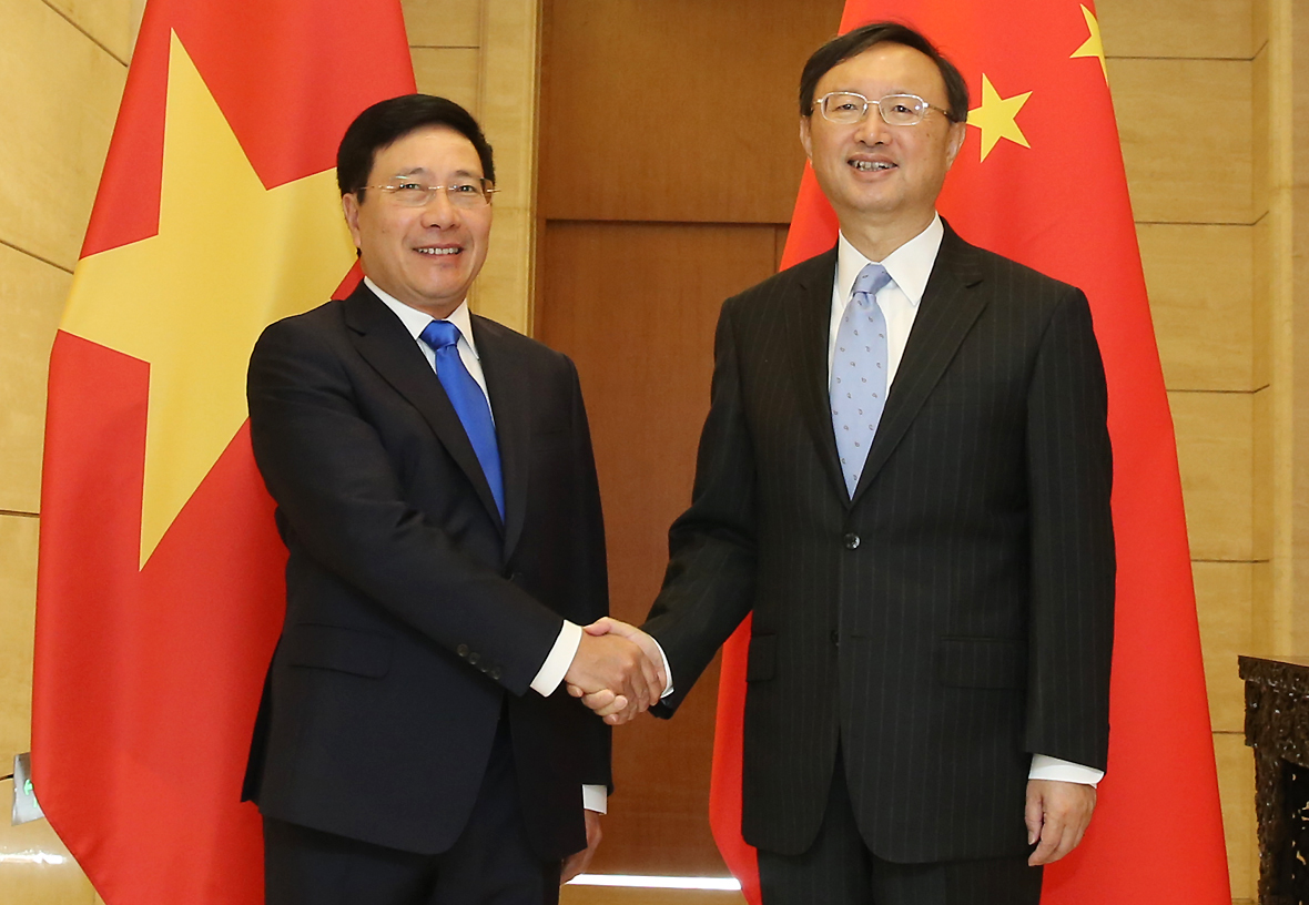 | Phó Thủ tướng Phạm Bình Minh và Ủy viên quốc vụ Trung Quốc Dương Khiết Trì tại phiên họp lần thứ 10 của Ủy ban chỉ đạo hợp tác song phương Việt Nam-Trung Quốc. Ảnh: VGP/Hải Minh |
