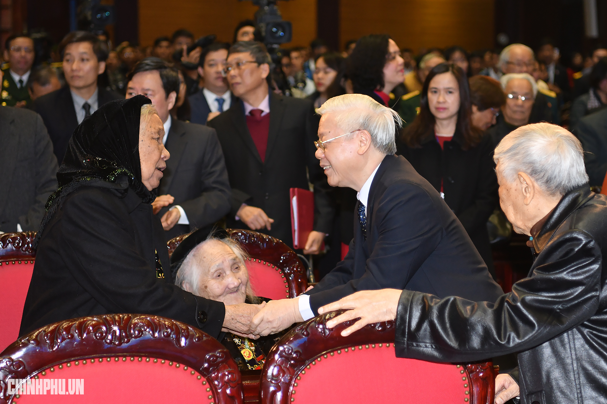 | Tổng Bí thư, Chủ tịch nước Nguyễn Phú Trọng cùng các đại biểu. Ảnh: VGP/Quang Hiếu |