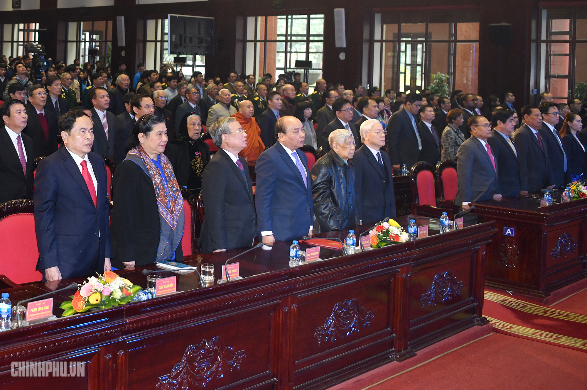 Tổng Bí thư, Chủ tịch nước Nguyễn Phú Trọng, nguyên Tổng Bí thư Lê Khả Phiêu, Thủ tướng Nguyễn Xuân Phúc, Phó Chủ tịch thường trực Quốc hội Tòng Thị Phóng, Chủ tịch Ủy ban Trung ương MTTQ Trần Thanh Mẫn, Thường trực Ban Bí thư Trần Quốc Vượng và các đồng chí Ủy viên Bộ Chính trị, Bí thư Trung ương Đảng, lãnh đạo các bộ, ngành, TP. Hà Nội, các tỉnh giáp biên giới Campuchia, các cựu chuyên gia, quân tình nguyện Việt Nam tại Campuchia tham dự buổi lễ.