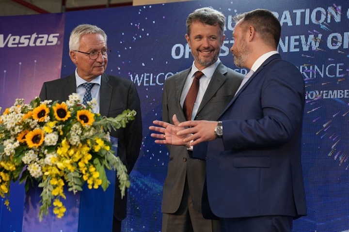 Thái tử (đứng giữa) tham dự lễ khai trương văn phòng mới của Vestas