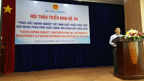Ông Đặng Hoàng Hải cũng cho biết, hội thảo triển khai “ đề án thúc đẩy doanh nghiệp Việt Nam xuất khẩu trực tiếp vào mạng phân phối nước ngoài” diễn ra nhằm đẩy mạnh công tác xúc tiến thương mại và kết nối với các hệ thống phân phối nước ngoài. Tuy nhiên, việc tiếp cận các hệ thống phân phối nước ngoài có trình độ tiên tiến, hiện đại với nguồn lực hạn chế khiến các doanh nghiệp gặp nhiều khó khăn, chính vì vậy Bộ Công Thương đã xây dựng đề án “ Thúc đẩy các doanh nghiệp Việt Nam trực tiếp tham gia các mạng phân phối nước ngoài đến năm 2020” trình Chính phủ và ngày 3/9/2015 đề án đã được Thủ tướng Chính phủ phê duyệt theo quyết định số 1513/QĐ- TTg nâng tâm thành đề án của Chính phủ, triển khai trên toàn quốc.