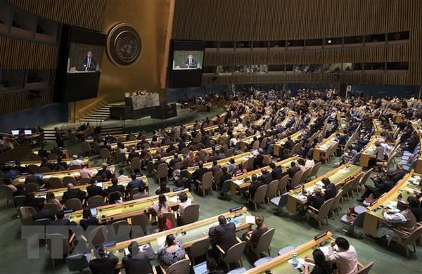 | Toàn cảnh một cuộc họp của Đại Hội đồng Liên hợp quốc ở New York, Mỹ. (Nguồn: AFP/TTXVN) |