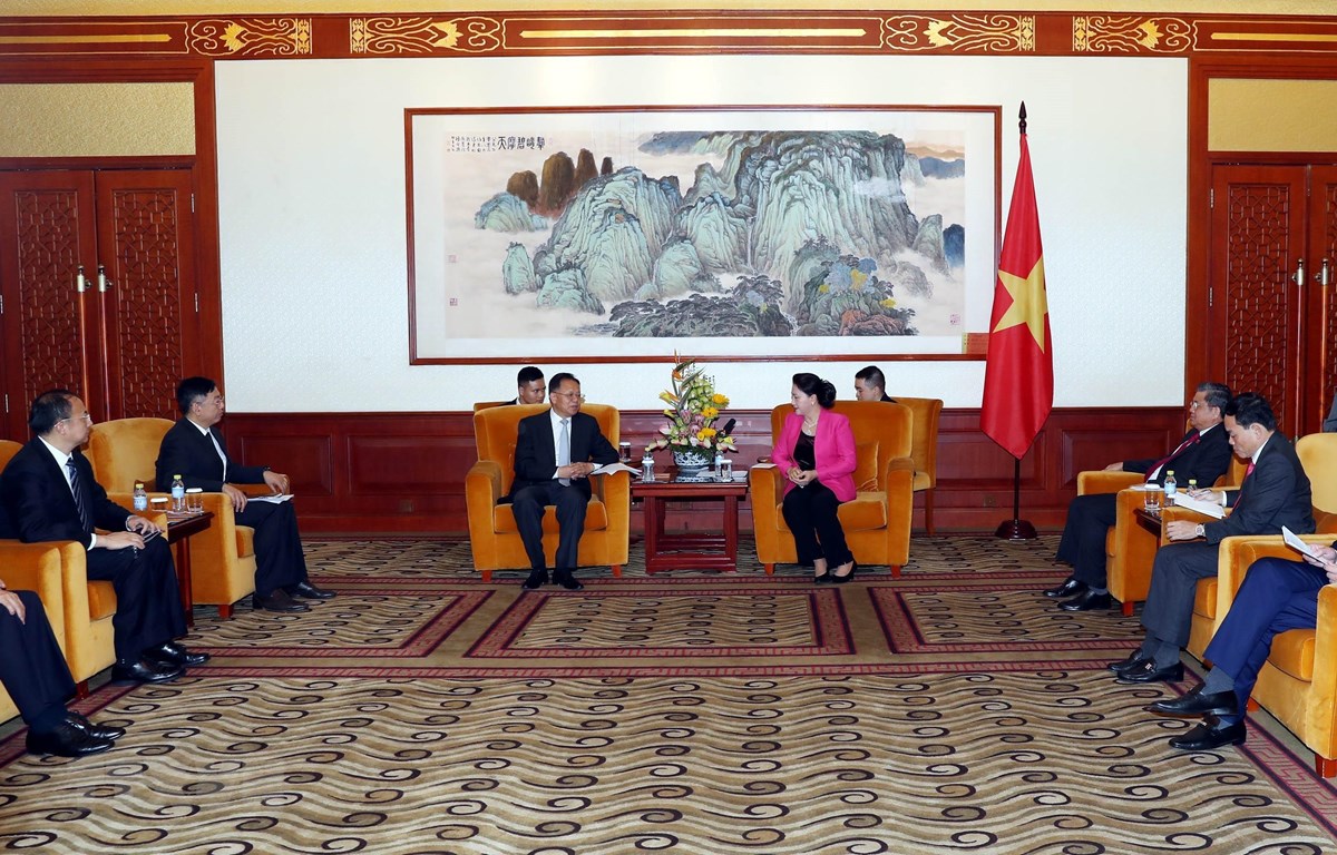 Chủ tịch Quốc hội Nguyễn Thị Kim Ngân bày tỏ vui mừng gặp đại diện một số doanh nghiệp tại Bắc Kinh, đồng thời cho biết mục đích chuyến thăm chính thức Trung Quốc lần này của Đoàn đại biểu cấp cao Quốc hội Việt Nam nhằm tiếp tục thực hiện thỏa thuận cấp cao hai nước đã đạt được trong các cuộc tiếp xúc thời gian qua, thỏa thuận hợp tác giữa Quốc hội hai nước.
