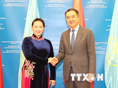 Thủ tướng Bakytzhan Sagintayev đánh giá cao chuyến thăm của Chủ tịch Quốc hội Nguyễn Thị Kim Ngân và Đoàn Đại biểu cấp cao Quốc hội Việt Nam diễn ra vào đúng năm hai nước kỷ niệm 25 năm thiết lập quan hệ ngoại giao. Nhất trí với đánh giá của Chủ tịch Quốc hội Nguyễn Thị Kim Ngân về những kết quả bước đầu tích cực trong hợp tác kinh tế thương mại kể từ sau khi hai nước ký kết và triển khai Hiệp định Thương mại Tự do Việt Nam – Liên minh Kinh tế Á – Âu, song Thủ tướng Bakytzhan Sagintayev cũng cho rằng kết quả này còn hạn chế, chưa tương xứng với tiềm năng, thế mạnh của mỗi nước. Để khai thác tối đa những lợi ích mà Hiệp định mang lại cũng như thúc đẩy hợp tác kinh tế, thương mại song phương, hai bên nhất trí cần đánh giá thực chất kết quả 1 năm triển khai Hiệp định, từ đó rút kinh nghiệm và tìm ra biện pháp triển khai hiệu quả hơn nữa trong thời gian tới.