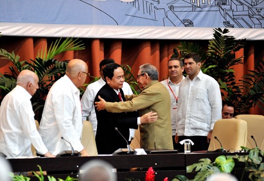 Chúng tôi tin tưởng rằng, con đường mà mỗi Ðảng vạch ra nhằm thực hiện đổi mới toàn diện, hay cập nhật hóa mô hình phát triển kinh tế-xã hội do Đảng Cộng sản Cu-ba khởi xướng và lãnh đạo sẽ đi đến đích cuối cùng của mình. Chủ tịch Phi-đen đã từng nói: "Cách mạng không phải là một thứ dễ dàng. Cách mạnh là một cuộc đấu tranh giữa tương lai và quá khứ". Bởi thế, Việt Nam, Cu-ba càng phải sát cánh bên nhau, để làm sâu sắc hơn, mang lại hiệu quả thiết thực hơn các mối quan hệ mẫu mực, hữu nghị, truyền thống, hợp tác toàn diện, đoàn kết thủy chung giữa hai nước.