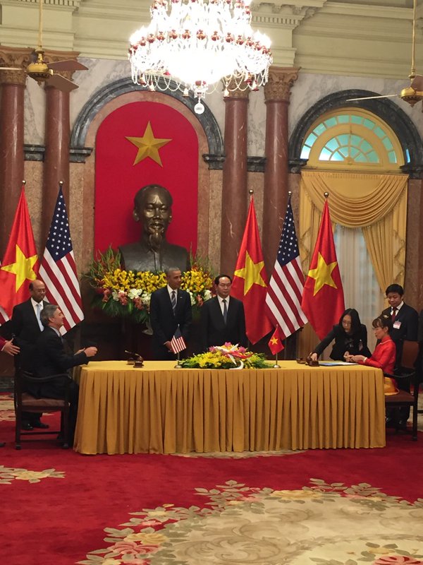 Bà Nguyễn Thị Phương Thảo, Tổng giám đốc Vietjet Air và ông Ray Conner, Tổng giám đốc Tập đoàn chế tạo máy bay Boeing ký hợp đồng quan trọng này trước sự chứng kiến của Chủ tịch nước Trần Đại Quang và Tổng thống Mỹ Barack Obama cùng đoàn lãnh đạo cấp cao của hai nước nhân chuyến thăm của ông tại Hà Nội.