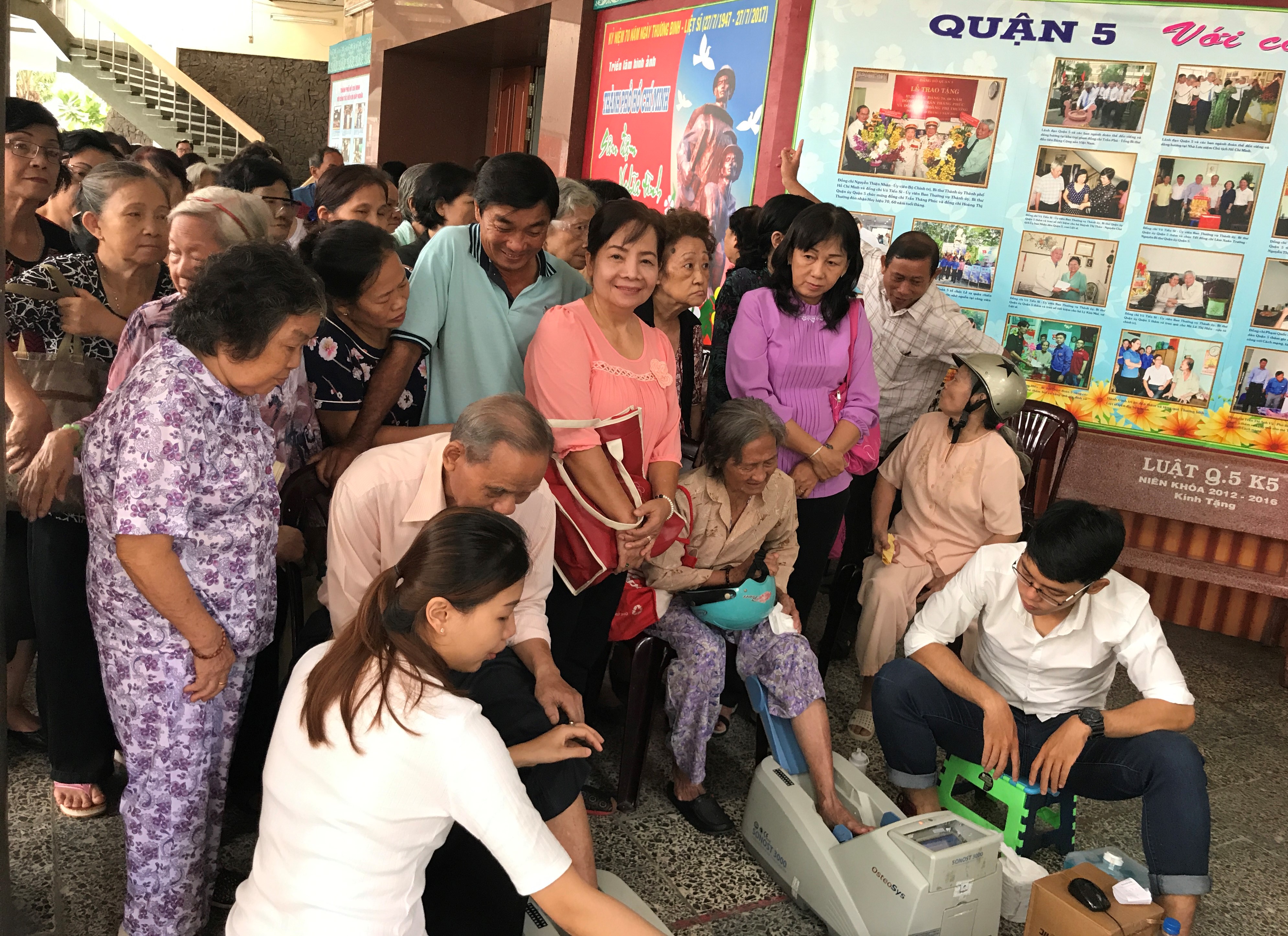 Người cao tuổi tới tham dự hội thảo hào hứng với hoạt động đo loãng xương.