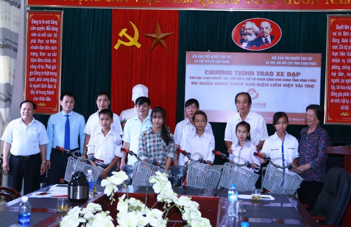 Xe đạp được trao cho các học sinh khuyết tật, trẻ em có hoàn cảnh khó khăn trên địa bàn tại các huyện Sông Lô ( 7 xe), Lập Thạch (7 xe), Thị xã Phúc Yên (5xe), Yên Lạc (11 xe) của tỉnh Vĩnh Phúc. Toàn bộ kinh phí mua xe đạp do Ngân hàng TMCP Bưu điện Liên Việt tài trợ.