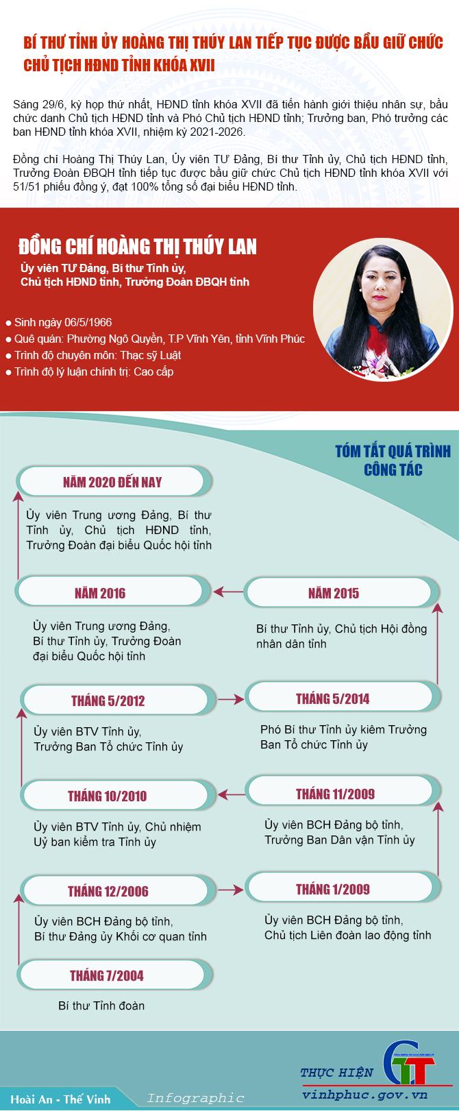 Bà Hoàng Thị Thúy Lan sinh năm 1966, Quê quán: phường Ngô Quyền, thành phố Vĩnh Yên, tỉnh Vĩnh Phúc