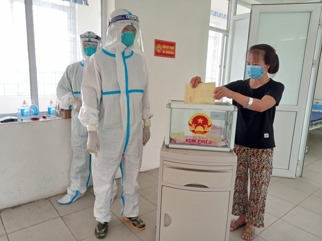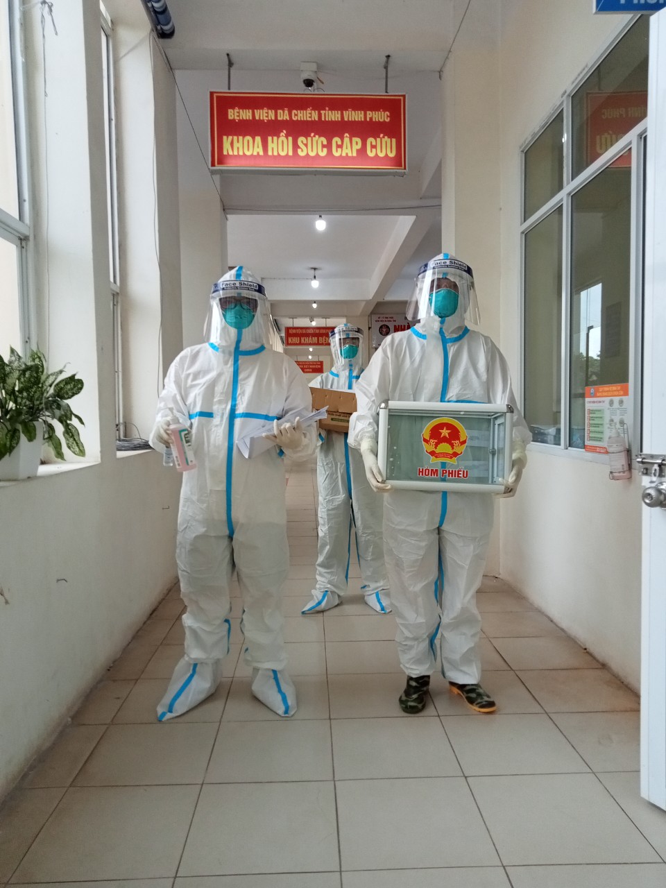 Hòm phiếu tại Bệnh viện dã chiến tỉnh Vĩnh Phúc.