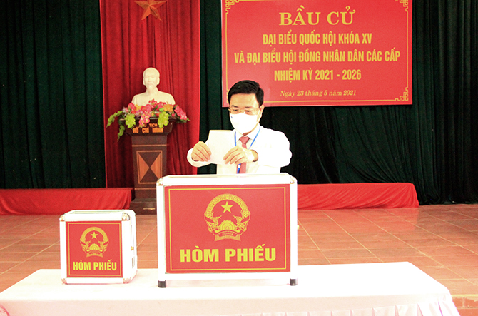 Chủ tịch UBND tỉnh Lê Duy Thành thực hiện quyền công dân của mình tại đơn vị bầu cử số 3, xã Vũ Di.