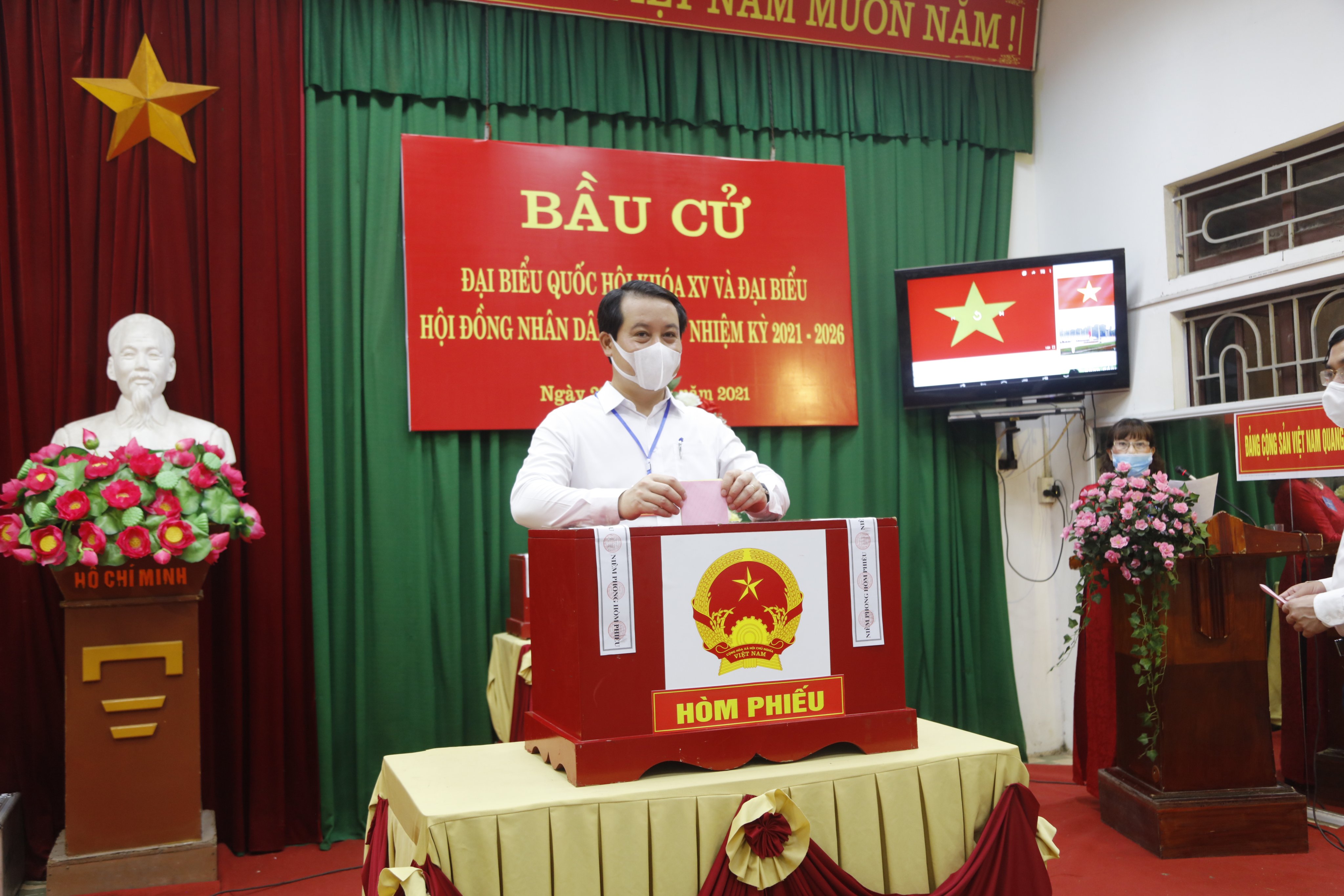 Phó Bí thư thường trực Tỉnh ùy Phạm Hoàng Anh bỏ phiếu tại phường Trưng Trắc, thành phố Phúc Yên.