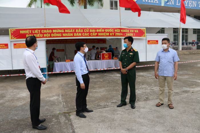 Chủ tịch UBND tỉnh Lê Duy Thành tại điểm bầu cử Khu cách ly tập trung Trường Chuyên cũ.