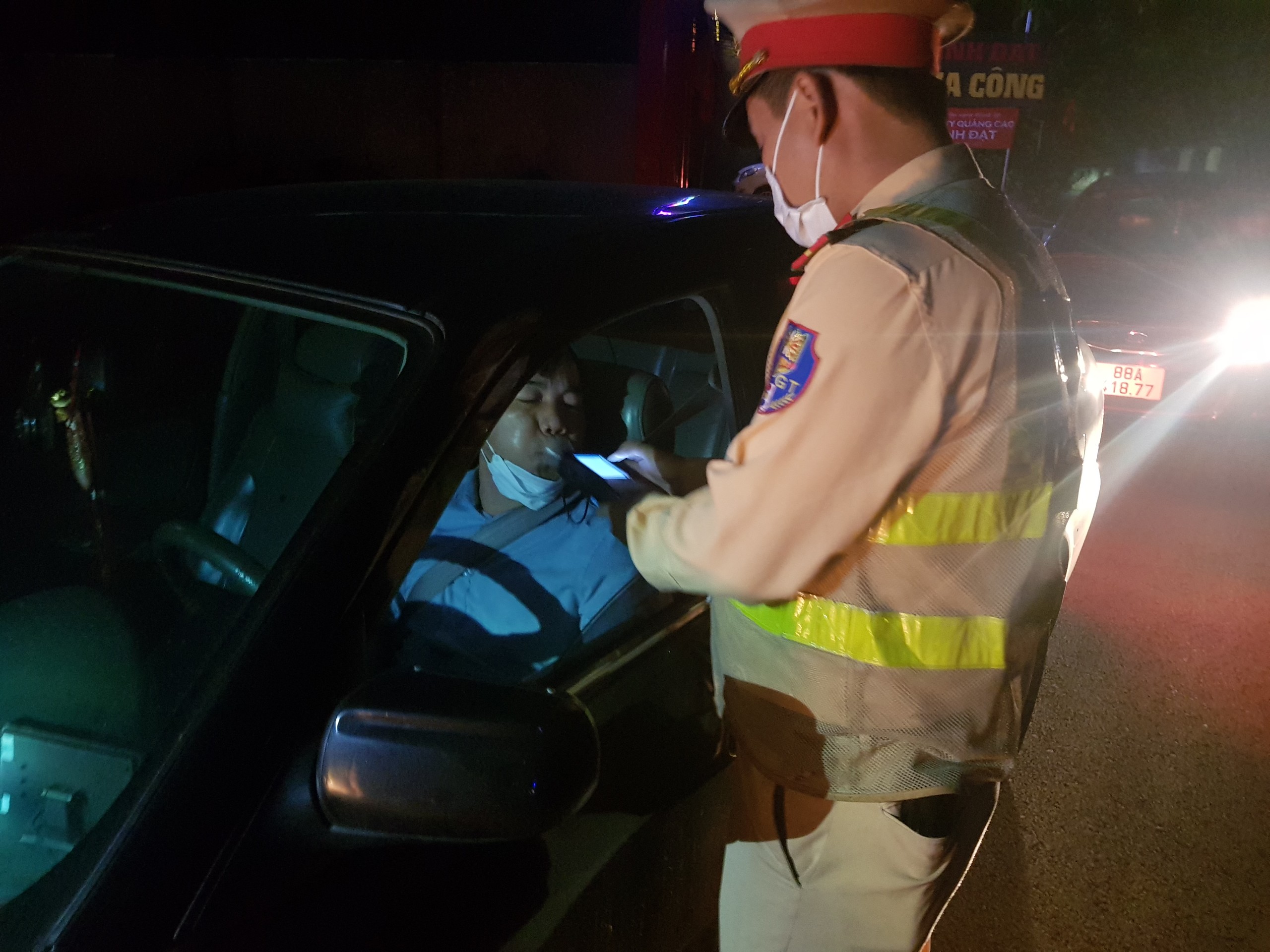 Sau 2 giờ, hàng trăm tài xế được CSGT kiểm tra, trong đó có 4 người vi phạm ngậm ngùi lĩnh phạt nặng sau khi bị tổ công tác đội Cảnh sát giao thông - trật tự Công an huyện Bình Xuyên (Vĩnh Phúc) tiến hành đo nồng độ cồn .