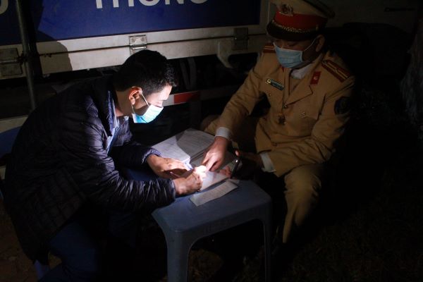 Chỉ trong khoảng thời gian ngắn tổ công tác làm nhiệm vụ, phóng viên đã ghi nhận được tất cả các phương tiện đi qua khu vực đều được CSGT hướng dẫn vào khu vực kiểm tra.