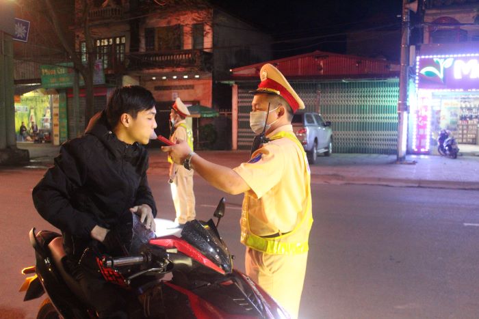 Chỉ ít phút triển khai đội hình, tổ công tác đã phát hiện xe máy mang BKS 88H1- 149.YZ có dấu hiệu vi phạm nồng độ cồn ngay lập tức tổ công tác đã ra hiệu lệnh dừng xe để kiểm tra.