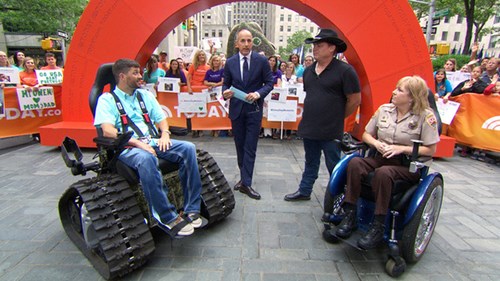 Hóa ra, vì muốn để vợ có được bất ngờ, anh Brad đã chế tạo ra chiếc xe lăn có bánh xe giống như xe tăng, giúp vợ di chuyển được trên nhiều địa hình khác nhau, hi vọng vợ sẽ tiếp tục có những ngày tháng vui vẻ khi cả gia đình cùng nhau cắm trại, leo núi ngoài trời.