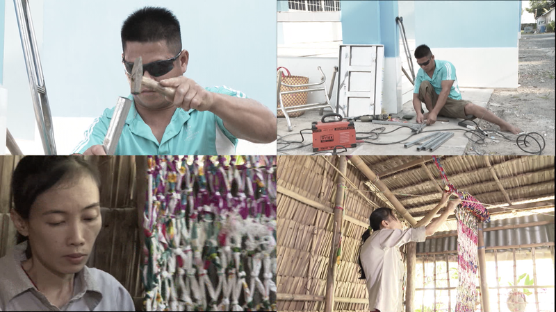 Ra riêng với đôi bàn tay trắng, của cải duy nhất của anh chị chỉ có cặp bò của người quen. Hằng ngày, chị Rạng mua vải vụn về đan thảm lót, đan lưới rào gà vịt để kiếm tiền trang trải cuộc sống. Còn anh Giu nhờ có tay nghề gia công, nên không ít bà con trong vùng liên tục đặt anh làm bàn ghế hoặc các vật dụng làm nông, nhờ vậy mà hai vợ chồng có thể gói ghém sống qua ngày.
