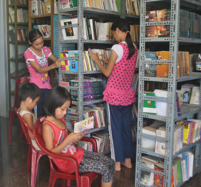 Các em nhỏ tìm đọc sách ở thư viện “Tình quê”