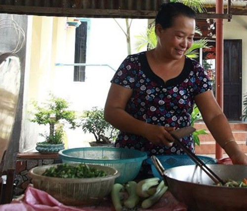 | Bà Vượng đang chuẩn bị cơm cho các em |