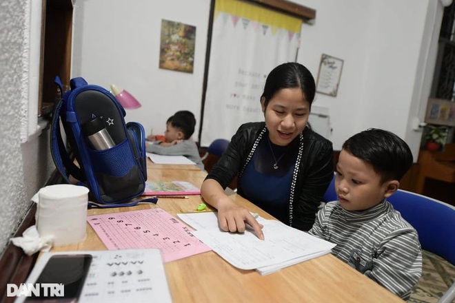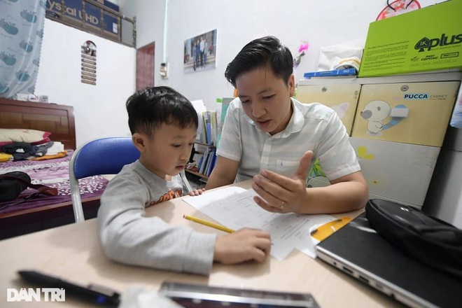 Anh Dương và chị Lý cùng dạy học thêm cho các con tại nhà.