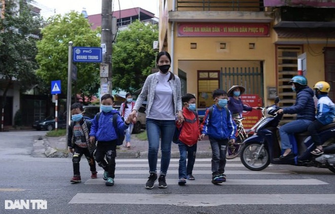 Hàng ngày chị Lý dẫn các con nhỏ tới trường.