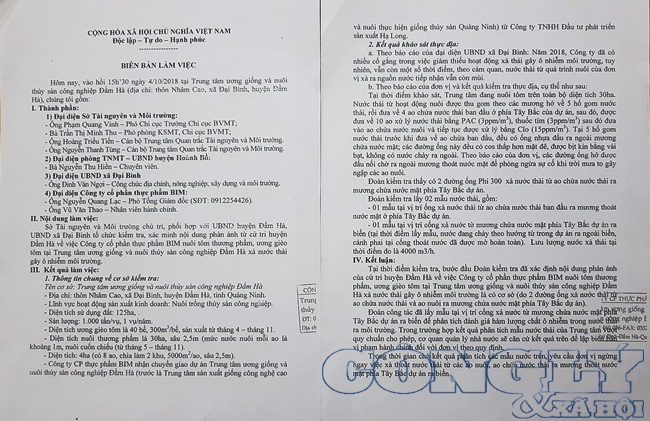 Các biên bản ghi nhận hiện trạng CTCP Thực phẩm BIM xả thải ra môi trường