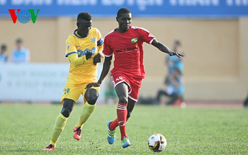 FLC Thanh Hóa (vàng) đang đau đầu vì ngoại binh. (Ảnh: Minh Hoàng).