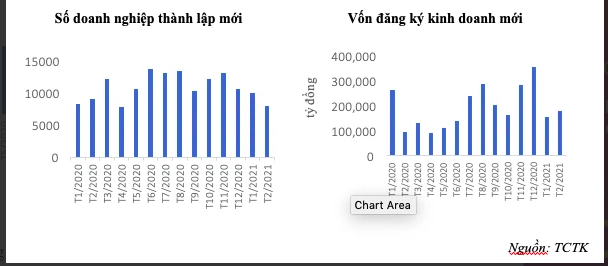 Thống kê của Tổng Cục thống kê cho hay, trong tháng 01/2021, cả nước có 10.091 doanh nghiệp thành lập mới với số vốn đăng ý là 155,1 nghìn tỷ đồng, tăng 21,9% về số doanh nghiệp, tăng 25,9% về vốn đăng ký so với cùng kỳ năm trước. Bước sang tháng 02/2021, cả nước có 8.038 doanh nghiệp thành lập mới với số vốn đăng ký là 179,7 nghìn tỷ đồng giảm 12,3% về số doanh nghiệp, tăng 85,6% về vốn đăng ký so với cùng kỳ năm trước.