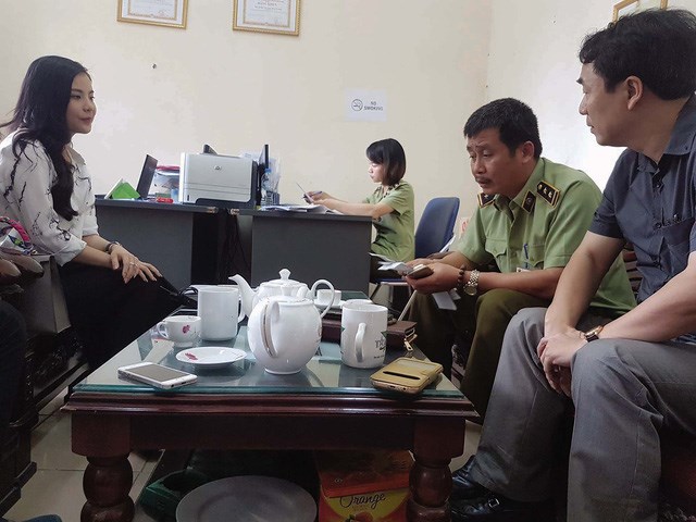 Bà Nguyễn Thu Trang đang làm việc với cơ quan chức năng |