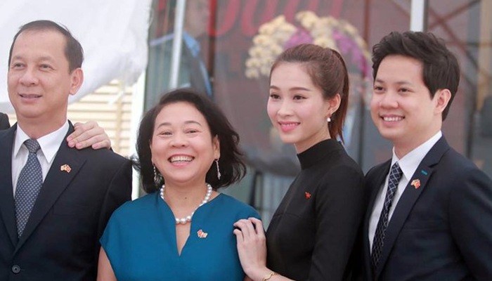 Ông Nguyễn Văn Trung - Chủ tịch Hội đồng Quản trị Trung Thủy Group, bà Dương Thanh Thuỷ, hoa hậu Thu Thảo và Nguyễn Trung Tín (từ trái sang).