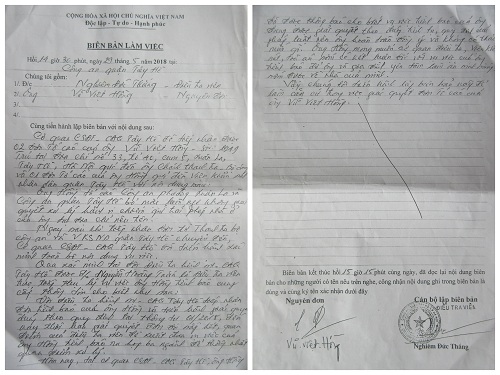 2 bên đã tiến hành lập biên bản với nội dung như sau: