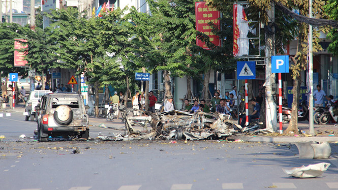 Trước đó, trưa ngày 3/10, tổng đài hãng xe Hoàng Minh nhận được một cú điện thoại của hành khách báo đón tại đường Lê Thanh Nghị, tổ 7, khu Hoàng Thạch, phường Cẩm Thạch, TP. Cẩm Phả. Ít phút sau, tài xế Đặng Văn Trung điều khiển xe taxi BKS 14N-7282 báo đã đón khách. 8 phút sau đó, khi chiếc xe chưa kịp khởi hành, vụ nổ xảy ra.