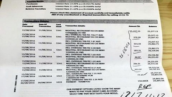 Sau khi kết thúc công việc của mình tại Việt Nam, ông John trở về nước, phát hiện thẻ bị trừ 39.429 AUD (gần 700 triệu đồng) cho bữa ăn tối ở nhà hàng NightFall.