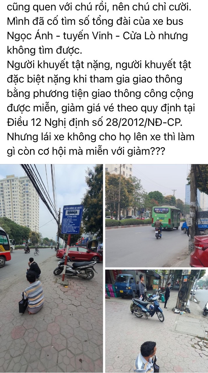 Trước đó Tạp chí Hòa Nhập (Hoanhap.vn) thông tin, Ngày 2/3 trên mạng xã hội đăng tải thông tin một người đàn ông khuyết tật nhờ người đi đường đón và bế lên xe buýt. Người đàn ông đi đường đã vẫy xe buýt BKS 37B - 01.XXX của hãng xe buýt N.A, chạy tuyến Vinh - Cửa Lò. Tuy nhiên, lái xe buýt không mở cửa, còn người phụ nữ bán vé chỉ mở ô cửa kính nhỏ, từ chối không đón khách. Sau đó, chiếc xe buýt chạy đi trong sự ngỡ ngàng của những người chứng kiến. Sau khi đăng tải, thông tin trên đã nhận được sự quan tâm của cộng đồng mạng. Hầu hết đều bày tỏ bức xúc trước cách hành xử của lái và phụ xe buýt.