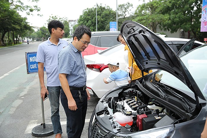 Khách hàng xem xe ấn tượng với động cơ 1.4L cùng hộp số tự động vô cấp (CVT) của VinFast Fadil