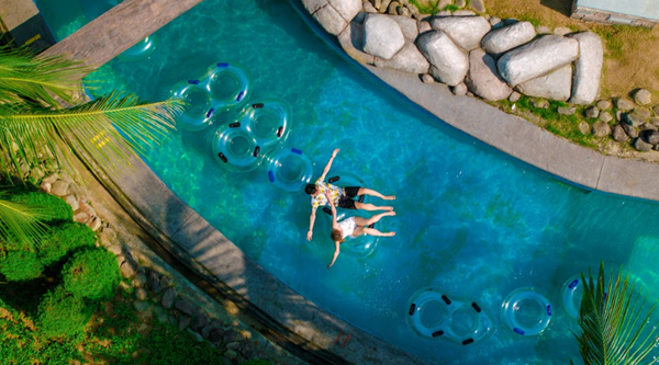 Bên cạnh khu vực cảm giác mạnh, hai phân khu còn lại dành riêng cho gia đình và trẻ nhỏ, mang lại trải nghiệm nhẹ nhàng, gắn kết và thư giãn. “Quốc Đảo Kỳ Diệu” là không gian sinh động với các mô hình đảo, cầu trượt mini, vòi phun nước cùng tiểu cảnh thân thiện cho trẻ em. Trong khi đó, “Dòng Sông Lơ Đãng” là lựa chọn lý tưởng để cả gia đình nằm thư giãn trên phao, trôi nhẹ nhàng theo dòng nước mát quanh công viên.