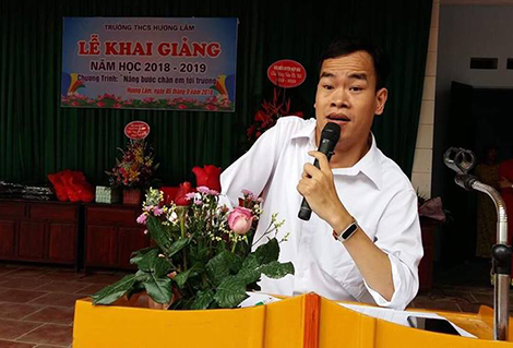 | Anh Lê Viết Thuận trong một lần về trường nói chuyện với các em học sinh. |