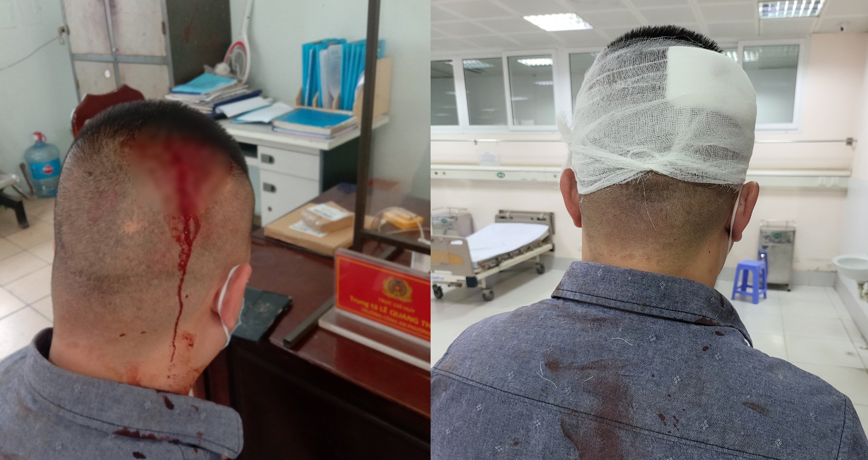 Ông Hiếu bị đánh trọng thương đã ra công an trình báo sự việc và nhập viện tại bệnh viện Đa khoa Đức Giang