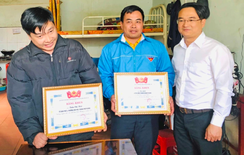 Với sự cống hiến của mình, anh Hải (áo đen) đã vinh dự được nhận bằng khen "Gương người tốt, việc tốt tiêu biểu của tháng" do Ban Chấp hành Tỉnh Đoàn Gia Lai trao tặng. (Ảnh: P.L)
