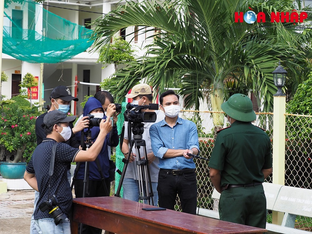 Phóng viên Tạp chí Hướng nghiệp và Hòa Nhập, Truyền hình Thông tấn xã, Truyền hình Quốc phòng Việt Nam... tham gia tác nghiệp tại xã đảo Thạnh An.