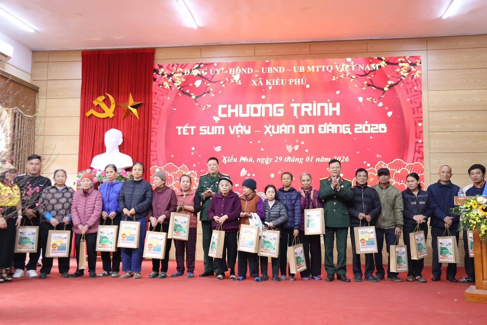 Nhân dịp này, đồng chí ghi nhận, đánh giá cao sự đồng hành, ủng hộ của các cơ quan, doanh nghiệp, tổ chức, cá nhân trong công tác chăm lo Tết cho các đối tượng trên địa bàn; đồng thời mong muốn bước sang năm 2026, cán bộ, đảng viên và Nhân dân tiếp tục phát huy tinh thần đoàn kết, thi đua lao động, sản xuất, thực hiện thắng lợi các nhiệm vụ phát triển kinh tế – xã hội, xây dựng xã Kiều Phú ngày càng văn minh, giàu đẹp.