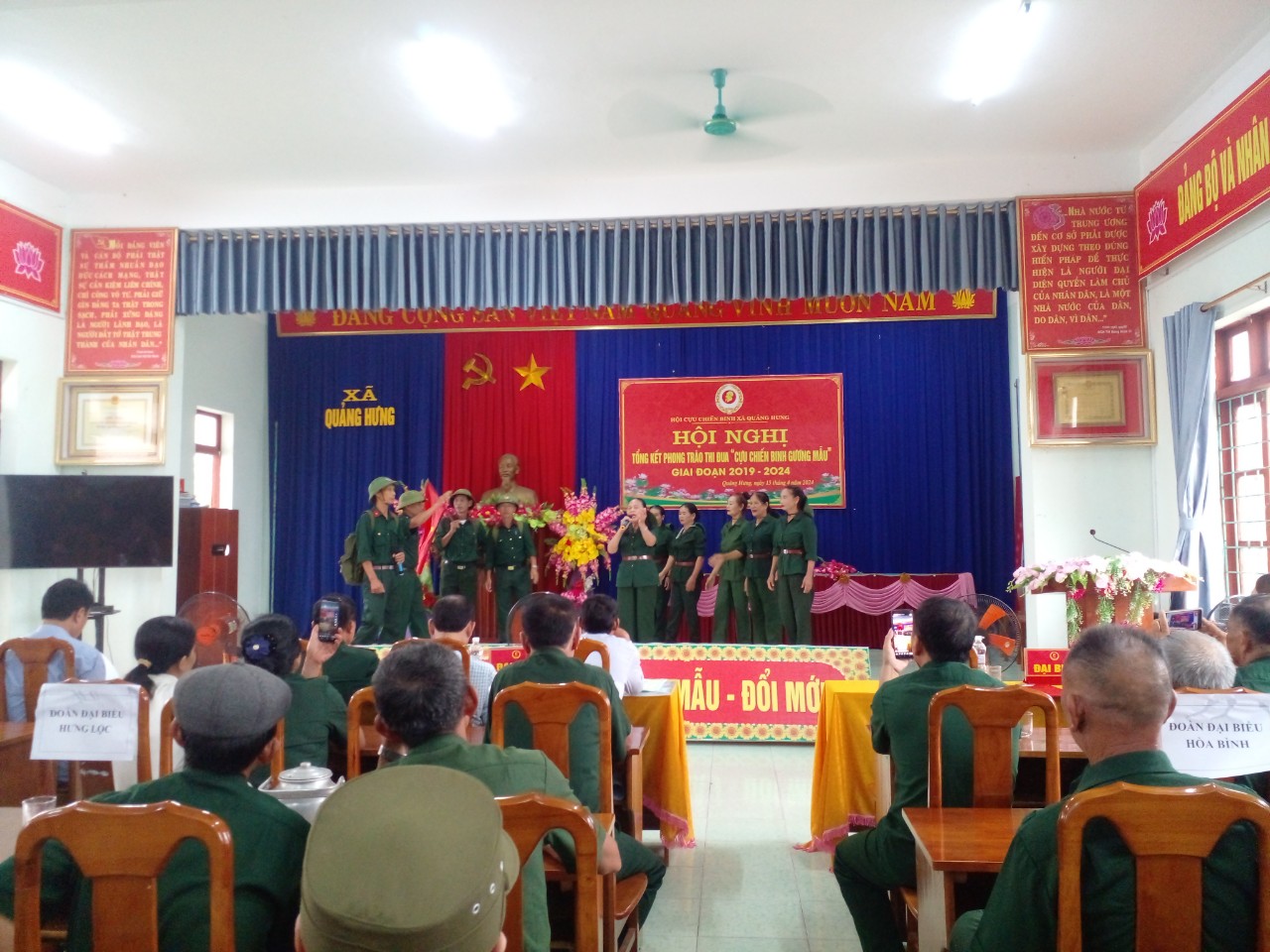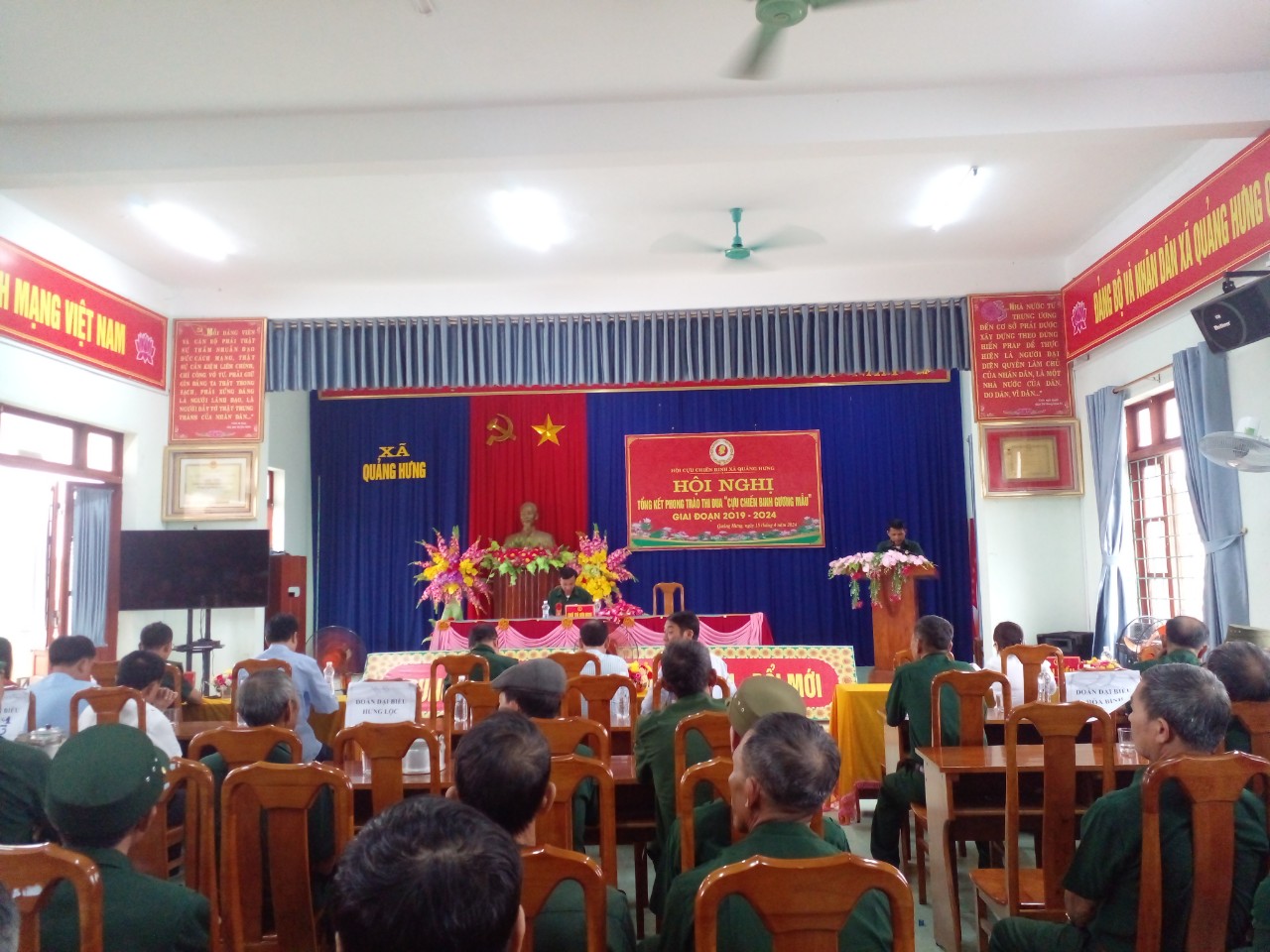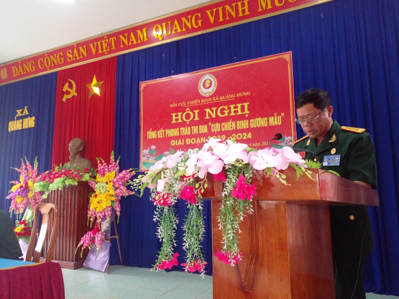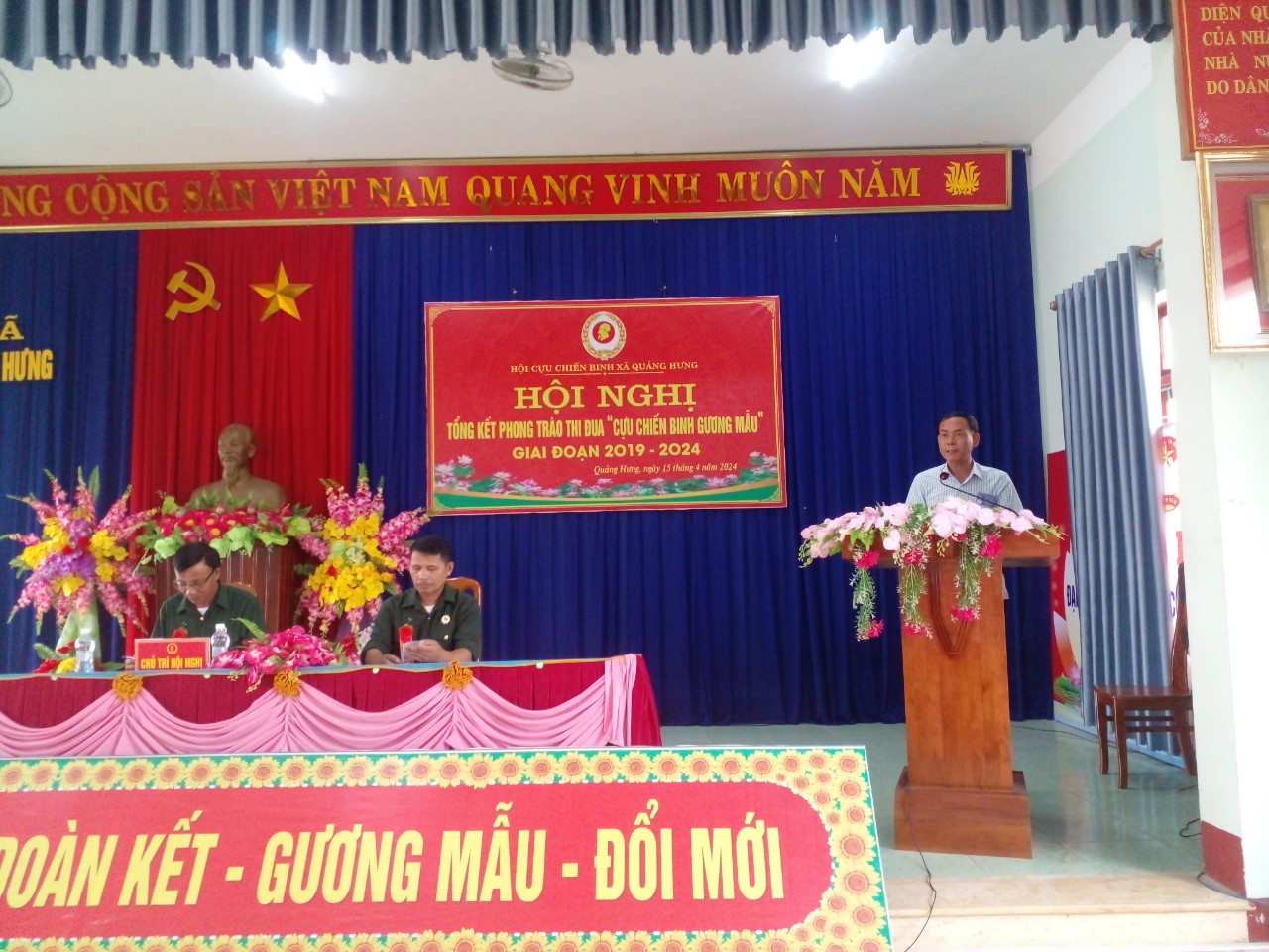 Ông Đàm Văn Tứ - Bí thư Đảng ủy xã Quảng Hưng, phát biểu tại hội nghị: “Hội cựu chiến binh xã Quảng Hưng tiếp tục phát huy bản chất truyền thống “Bộ đội Cụ Hồ”, quyết tâm thực hiện thắng lợi nhiệm vụ chính trị tại địa phương, trọng tâm hàng đầu là tham gia xây dựng, bảo vệ Đảng, Nhà nước, chính quyền và bảo vệ nhân dân đảm bảo giữ vững ổn định chính trị, trật tự an toàn xã hội trên địa bàn xã. Đoàn kết, tập hợp các thế hệ cựu chiến binh, phát triển hội viên, xây dựng tổ chức Hội ngày càng vững mạnh toàn diện, đặc biệt là phong trào xây dựng NTM nâng cao, khu dân cư kiểu mẫu; phong trào “Cựu chiến binh giúp nhau giảm nghèo làm kinh tế giỏi”, thúc đẩy nâng cao đời sống của hội viên cựu chiến binh cũng như giáo dục truyền thống yêu nước, chủ nghĩa anh hùng cách mạng, ý chí tự lực, tự cường cho thế hệ trẻ”.