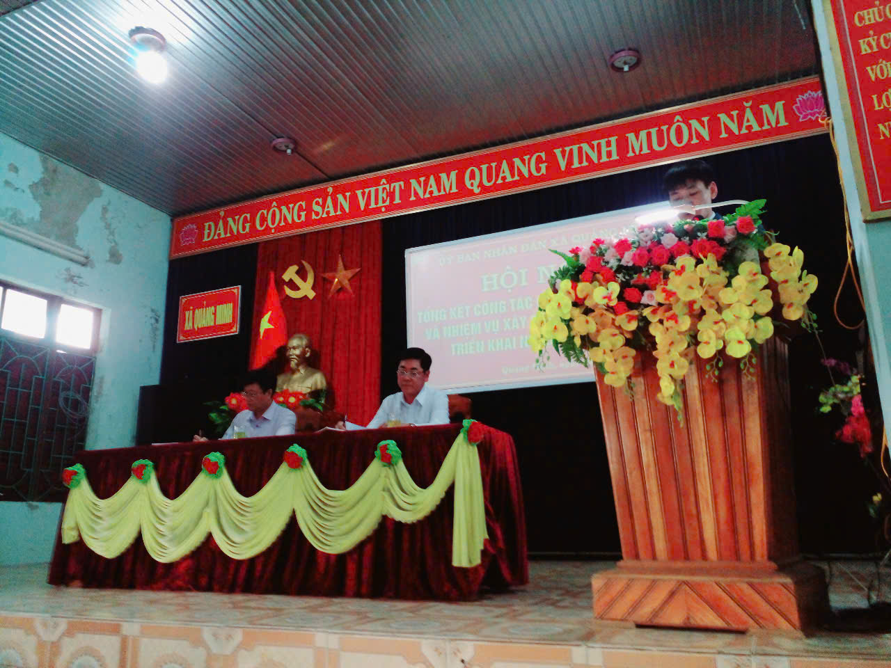 Tại hội nghị các đại biểu được nghe báo cáo tổng kết công tác Quốc phòng-An ninh năm 2024 của xã Quảng Minh. Năm qua, công tác Quốc phòng-An ninh của xã Quảng Minh đã đạt được nhiều kết quả quan trọng, góp phần bảo đảm tình hình an ninh trật tự, tạo sự ổn định về mọi mặt đời sống xã hội góp phần phát triển kinh tế-xã hội, xây dựng nông thôn mới. Ngay từ đầu năm Ban CHQS xã, Ban Công an xã đã tham mưu cho Đảng uỷ ban hành Nghị quyết lãnh đạo thực hiện nhiệm vụ Quốc phòng-An ninh, xây dựng kế hoạch, triển khai thực hiện nhiệm vụ xây dựng lực lượng, tuyển quân, huấn luyện, diễn tập và các nhiệm vụ đột xuất khác.