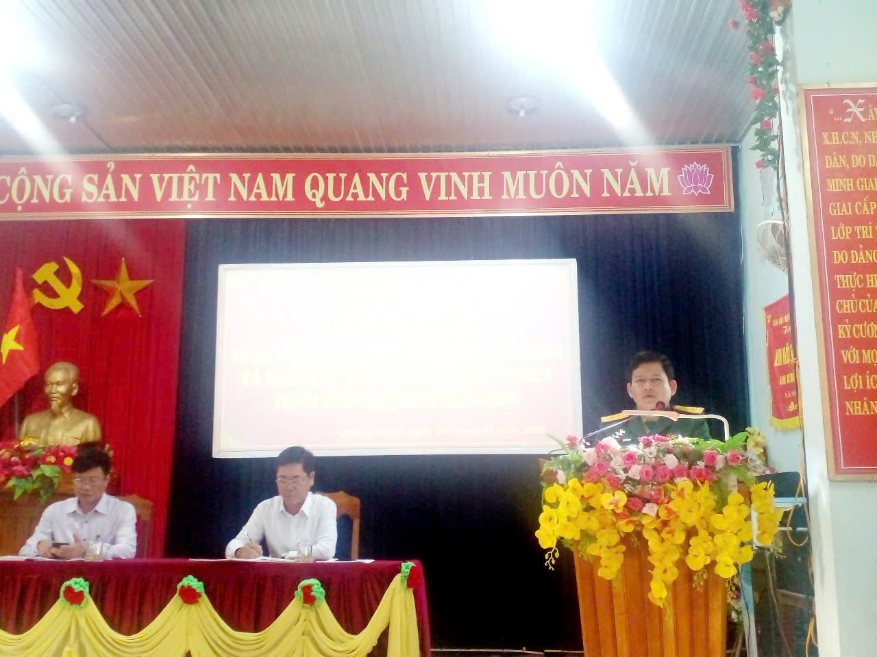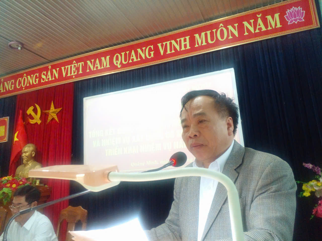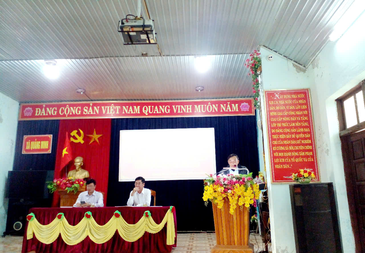 Ông Cao Việt Dũng, Phó BCH Quân sự thị xã ghi nhận và biểu dương những kết quả đạt được trong công tác Quốc phòng-An ninh xã Quảng Minh năm 2024, nhấn mạnh về nhiệm vụ trong 2025, trong thời gian tới xã tập trung chỉ đạo nâng cao chất lượng công tác giáo dục chính trị tư tưởng, tuyên truyền, phổ biến, giáo dục pháp luật, chủ động cung cấp thông tin định hướng tư tưởng cho cán bộ, đảng viên, đoàn viên, hội viên và nhân dân; làm chuyển biến rõ nét về nhận thức, ý thức trách nhiệm trong chấp hành pháp luật, nêu cao cảnh giác trước âm mưu, thủ đoạn “Diễn biến hòa bình”, bạo loạn lật đổ, kích động biểu tình, gây rối an ninh trật tự của các thế lực thù địch, các tổ chức phản động, các đối tượng cực đoan, nhất là trên không gian mạng. Đổi mới trong lãnh đạo, chỉ đạo công tác dân vận, đảm bảo hiệu quả, phù hợp với tình hình thực tiễn; trong đó, lực lượng quân sự, công an phải thực sự là nòng cốt trong công tác dân vận; chủ động đối thoại với người dân, thường xuyên kiểm tra, đôn đốc, xử lý kịp thời những bức xúc, phức tạp có thể dẫn tới mất an ninh, trật tự ở cơ sở.