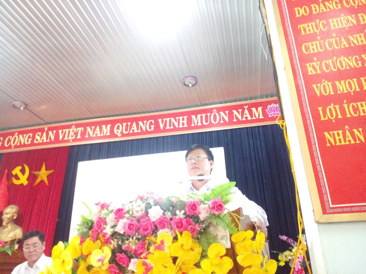 Ông Mai Tất Thắng, Chủ tịch UBMTTQ VN thị xã, phát biểu tại Hội nghị