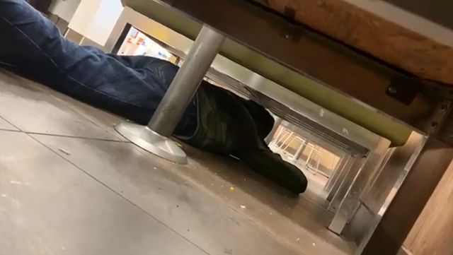 Một người nằm rạp xuống đất khi nghe tiếng súng nổ trong siêu thị (Ảnh: Twitter)